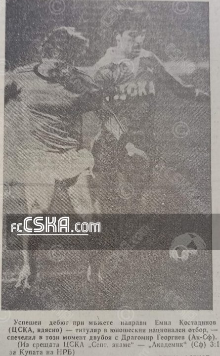 CSKA „Septemvriysko zname“ won against Akademik (Sofia) with result 1:3 in match from Round of 32 of Cup of the Soviet army 1984/85 played on 11 December 1984 at 13:30 on „Akademik“ stadium, in Sofia. goalscorers for the army men were Radoslav Zdravkov (20′), Plamen Markov (25′) and Yordan Dimitrov (81′).