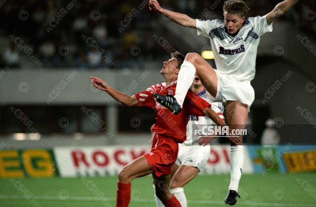 CSKA lost against Austria-Memfis (Viena) with result 3:1 in match from First round — First Leg of Champions League 1992/93 played on 16 September 1992 at 20:30 goalscorer for the army men was Vanyo Shishkov (58′).