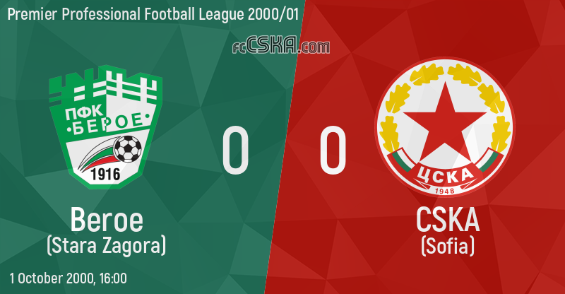 CSKA draw against Beroe (Stara Zagora) with result 0:0 in match from 7th round of Premier Professional Football League 2000/01 played on 1 October 2000 at 16:00 on „Beroe“ stadium, in Stara Zagora.