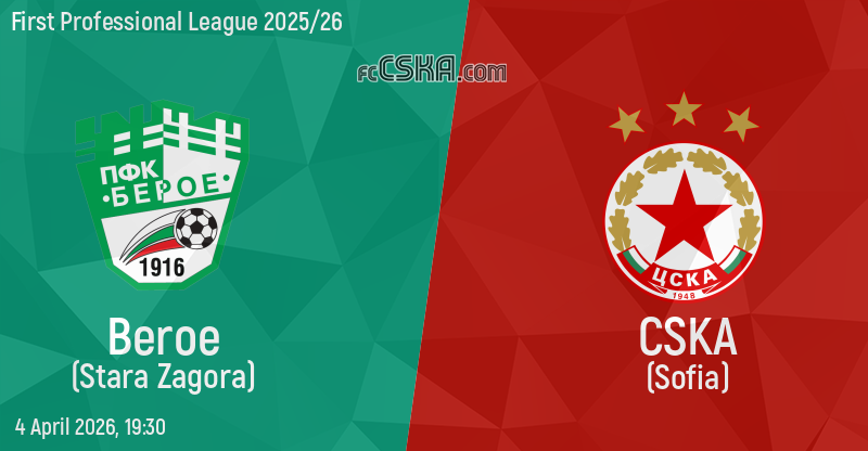 CSKA will play with Beroe in match from 28th round of First Professional League 2025/26 on 4 April 2026 at 19:30 on „Beroe“ stadium, in Stara Zagora. the match will translated live on „Diema sport”.
