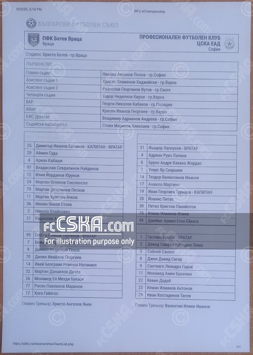 CSKA draw against Botev (Vratsa) with result 1:1 in match from 9th round of First Professional League 2025/26 played on 22 September 2025 at 20:30 on „Hristo Botev“ stadium, in Vratsa. goalscorer for the army men was Ioannis Pittas (49′).
