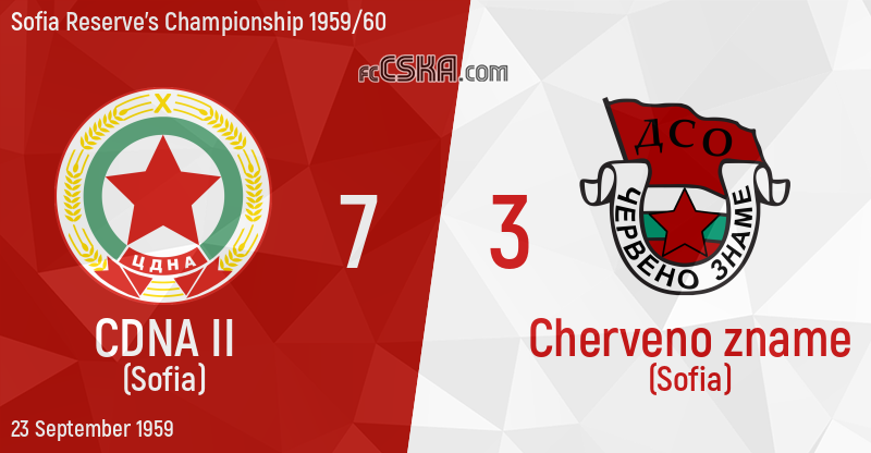 CDNA II won against Cherveno zname II (Sofia) with result 7:3 in match from 1st round of Sofia Reserve's Championship 1959/60 played on 23 September 1959