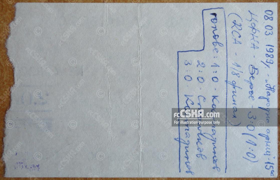 CFKA „Sredets“ won against Beroe (Stara Zagora) with result 3:0 in match from Round of 16 of Cup of the Soviet army 1988/89 played on 8 March 1989 at 15:00 on „Narodna armiya“ stadium, in Sofia. goalscorers for the army men were Emil Kostadinov (40′ and 77′) and Hristo Stoichkov (54′).