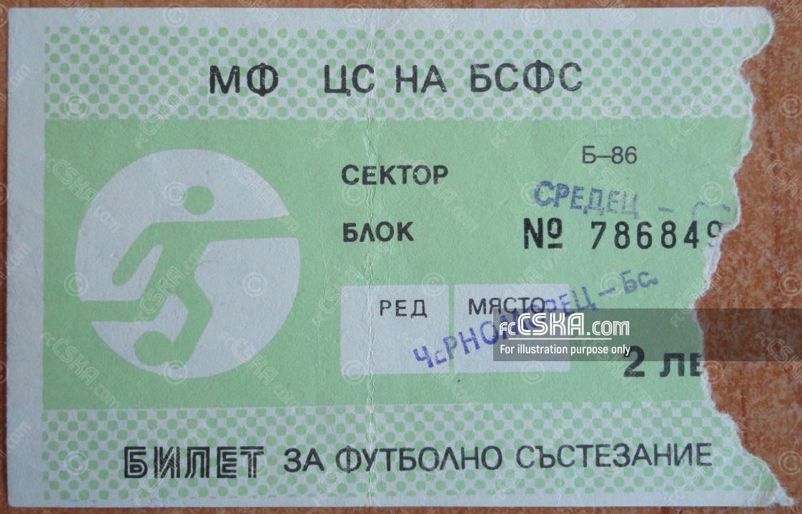 CFKA „Sredets“ won against Chernomorets (Burgas) with result 10:1 in match from 25th round of „А“ Republican Football Group 1986/87 played on 22 April 1987 at 19:15 on „Narodna armiya“ stadium, in Sofia. goalscorers for the army men were Lyuboslav Penev (17′, 43′, 49′, 72′ and 73′), Hristo Stoichkov (23′), Lachezar Tanev (28′ and 58′ from penalty), Angel Chervenkov (61′) and Emil Kostadinov (82′).
