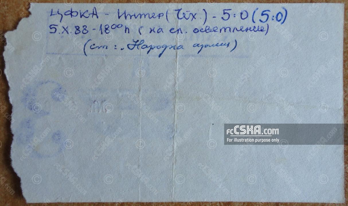 CFKA „Sredets“ won against Inter (Bratislava) with result 5:0 in match from Round of 32 — Second Leg of Cup Winners' Cup 1988/89 played on 5 October 1988 at 17:00 on „Narodna armiya“ stadium, in Sofia. goalscorers for the army men were Lyuboslav Penev (1′), Hristo Stoichkov (2′), Emil Kostadinov (11′ and 38′) and Plamen Getov (21′).