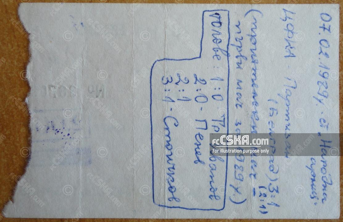 CFKA „Sredets“ won against Partizan (Beograd) with result 3:1 in match from Friendly games 1988/89 played on 7 February 1989 at 15:00 on „Narodna armiya“ stadium, in Sofia. goalscorers for the army men were Trifon Ivanov, Lyuboslav Penev and Hristo Stoichkov.