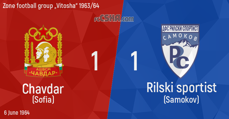 Chavdar Sf draw against Rilski sportist (Samokov) with result 1:1 in match from 26th round of Zone football group „Vitosha“ 1963/64 played on 6 June 1964