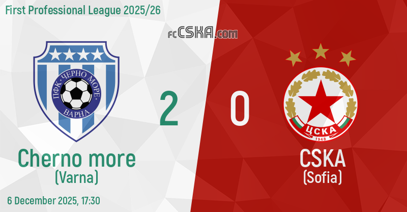 CSKA lost against Cherno more (Varna) with result 2:0 in match from 19th round of First Professional League 2025/26 played on 6 December 2025 at 17:30 on „Ticha“ stadium, in Varna.