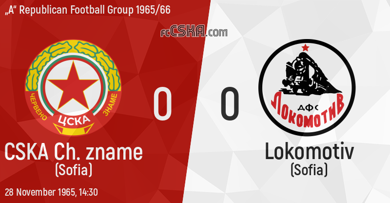 CSKA „Cherveno zname“ draw against Lokomotiv (Sofia) with result 0:0 in match from 12th round of „А“ Republican Football Group 1965/66 played on 28 November 1965 at 14:30 on „Narodna armiya“ stadium, in Sofia.
