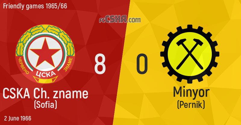 CSKA „Cherveno zname“ won against Minyor (Pernik) with result 8:0 in match from Friendly games 1965/66 played on 2 June 1966