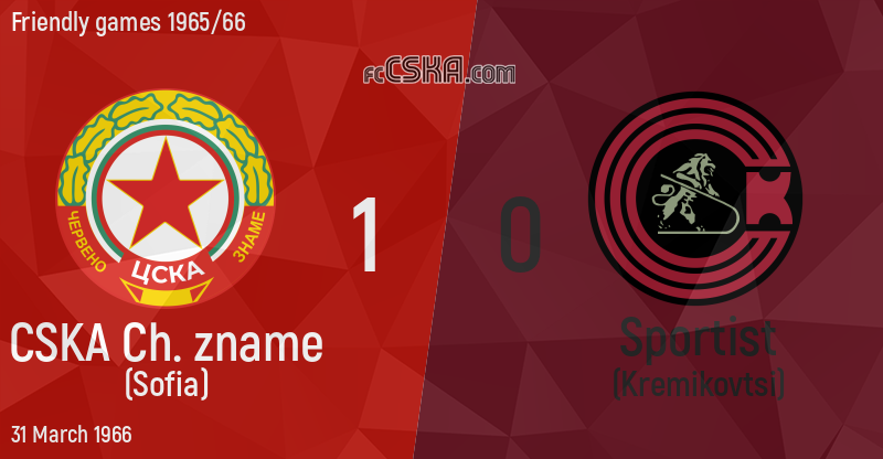 CSKA „Cherveno zname“ won against Sportist (Kremikovtsi) with result 1:0 in match from Friendly games 1965/66 played on 31 March 1966