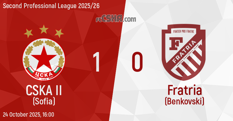 CSKA II won against Fratria (Benkovski) with result 1:0 in match from 13th round of Second Professional League 2025/26 played on 24 October 2025 at 16:00