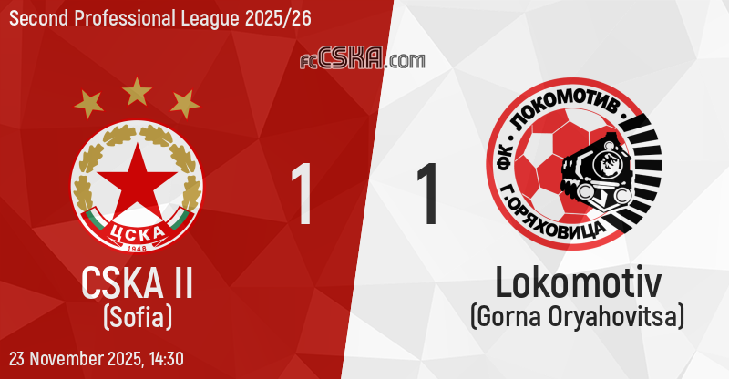 CSKA II draw against Lokomotiv (Gorna Oryahovitsa) with result 1:1 in match from 17th round of Second Professional League 2025/26 played on 23 November 2025 at 14:30