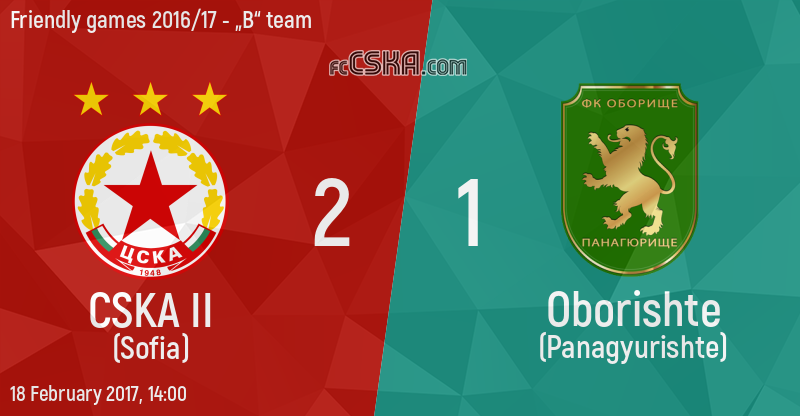 CSKA II won against Oborishte (Panagyurishte) with result 2:1 in match from Friendly games 2016/17 - „B“ team played on 18 February 2017 at 14:00 on „„Pancharevo“ base“ stadium, in Pancharevo.