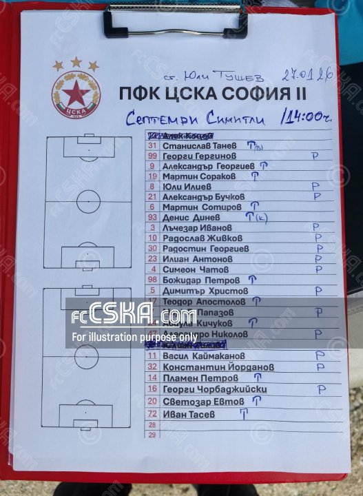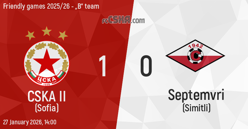 CSKA II won against Septemvri (Simitli) with result 1:0 in match from Friendly games 2025/26 - „B“ team played on 27 January 2026 at 14:00 on „Sports centre „Yulii Tushev"“ stadium, in Valkovo.