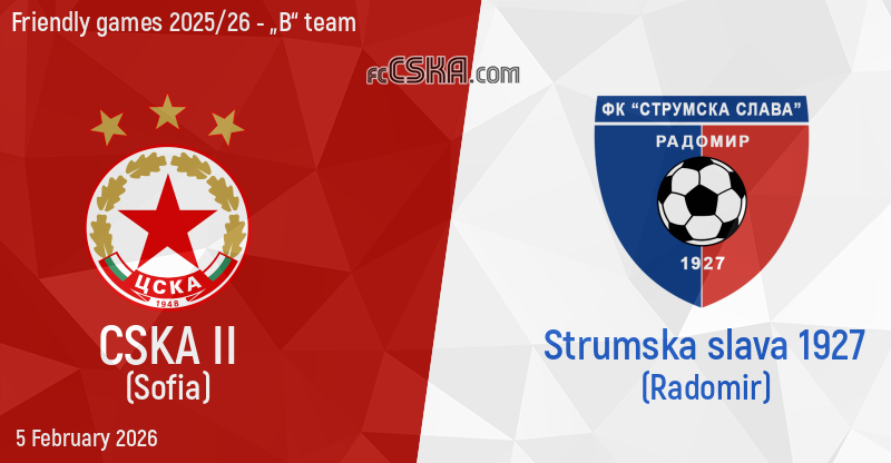 CSKA II will play with Strumska slava in match from Friendly games 2025/26 - „B“ team on 5 February 2026 on „CSKA Sports Complex“ stadium, in Pancharevo.