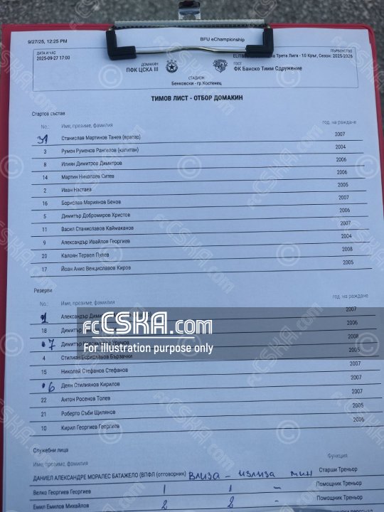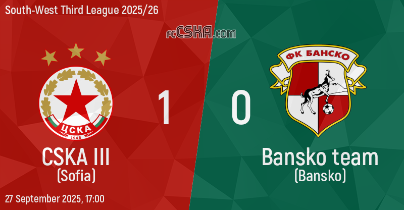 CSKA III won against Bansko team (Bansko) with result 1:0 in match from 10th round of South-West Third League 2025/26 played on 27 September 2025 at 17:00 on „Benkovski“ stadium, in Kostenets.