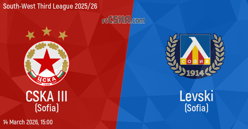 CSKA III will play with Levski II in match from 23rd round of South-West Third League 2025/26 on 14 March 2026 at 15:00 on „Benkovski“ stadium, in Kostenets.