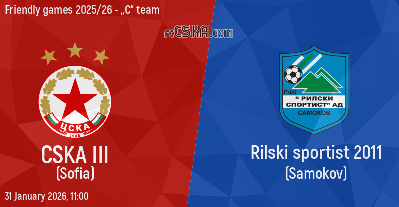 CSKA III will play with Rilski sportist in match from Friendly games 2025/26 - „C“ team on 31 January 2026 at 11:00 on „Benkovski“ stadium, in Kostenets.