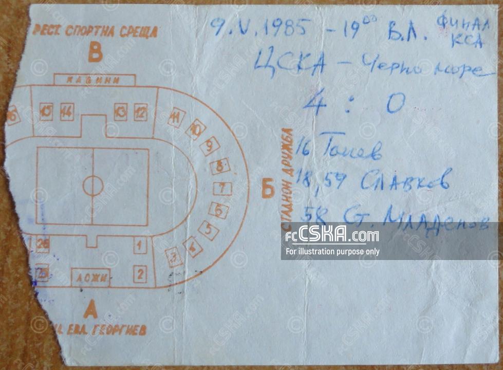 CSKA „Septemvriysko zname“ won against Cherno more (Varna) with result 4:0 in match from Final of Cup of the Soviet army 1984/85 played on 9 May 1985 on „Vasil Levski“ stadium, in Sofia. goalscorers for the army men were Lachezar Tanev (16′), Georgi Slavkov (18′ and 59′) and Stoycho Mladenov (58′).