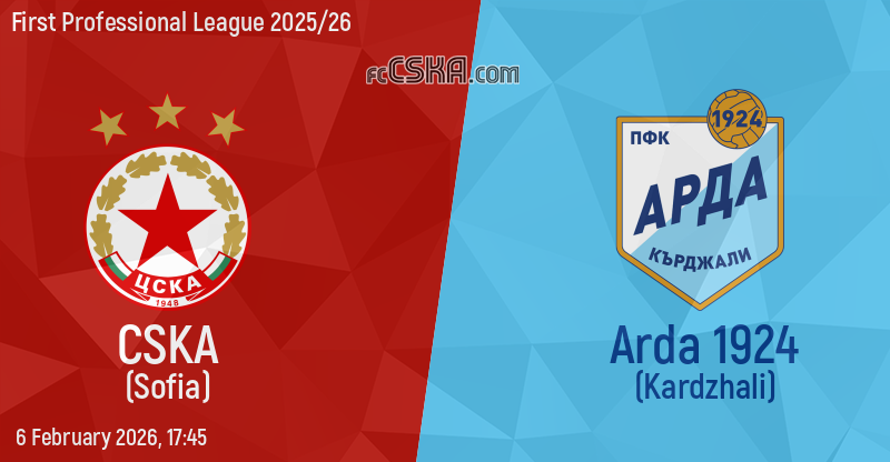 CSKA will play with Arda in match from 20th round of First Professional League 2025/26 on 6 February 2026 at 17:45 on „Vasil Levski“ stadium, in Sofia. the match will translated live on „Diema sport”.