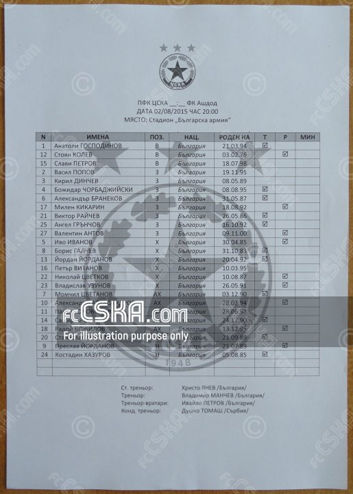 CSKA lost against Ashdod with result 0:1 in match from Friendly games 2015/16 played on 2 August 2015 at 19:00 on „Bulgarska armia“ stadium, in Sofia.