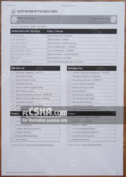 CSKA draw against Beroe (Stara Zagora) with result 0:0 in match from 23rd round of „А“ Football Group 2014/15 - first six played on 21 March 2015 at 17:00 on „Bulgarska armia“ stadium, in Sofia.