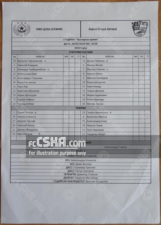 CSKA won against Beroe (Stara Zagora) with result 1:0 in match from 36th round of First Professional League 2017/18 - first six played on 20 May 2018 at 20:00 on „Bulgarska armia“ stadium, in Sofia. goalscorer for the army men was Kiril Despodov (66′ from penalty).
