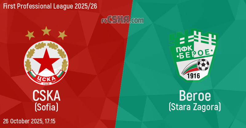 CSKA will play with Beroe in match from 13th round of First Professional League 2025/26 on 26 October 2025 at 17:15 on „Vasil Levski“ stadium, in Sofia. the match will translated live on „Diema sport”.