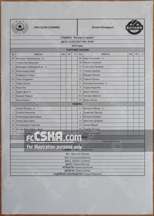 CSKA won against Botev (Plovdiv) with result 4:1 in match from 27th round of First Professional League 2017/18 - first six played on 31 March 2018 at 20:00 on „Bulgarska armia“ stadium, in Sofia. goalscorers for the army men were Raoul Loé (45′), Tiago Rodrigues (52′) and Jean Blanco (93′). Auto goal for the guests scored Plamen Dimov[1] (39′).