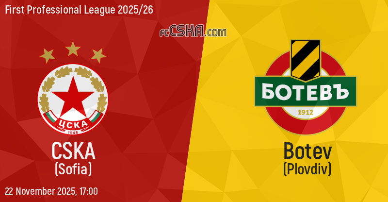 CSKA will play with Botev Pd in match from 16th round of First Professional League 2025/26 on 22 November 2025 at 17:00 on „Vasil Levski“ stadium, in Sofia. the match will translated live on „Diema sport”.
