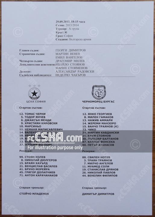 CSKA won against Chernomorets Burgas (Burgas) with result 3:0 in match from 11th round of „А“ Football Group 2013/14 played on 29 September 2013 at 18:15 on „Bulgarska armia“ stadium, in Sofia. goalscorers for the army men were Valentin Iliev (4′), Emil Gargorov (32′) and Todor Yanchev (61′).