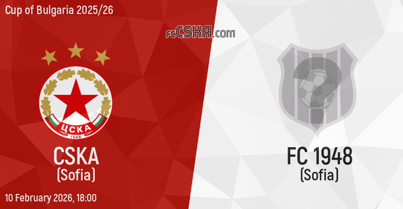 CSKA will play with FC 1948 in match from Quarterfinal of Cup of Bulgaria 2025/26 on 10 February 2026 at 18:00 on „Vasil Levski“ stadium, in Sofia. the match will translated live on „Diema sport”.