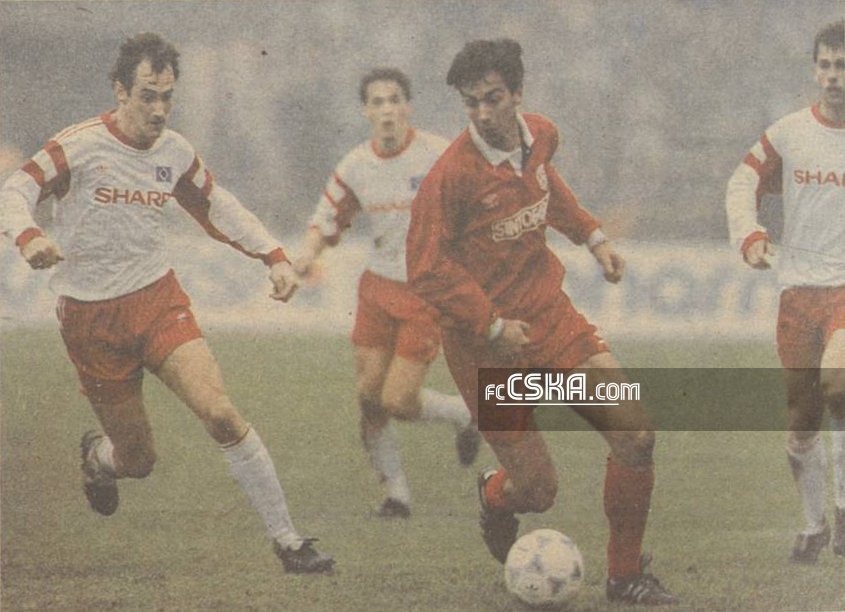 CSKA lost against Hamburger SV (Hamburg) with result 1:4 in match from Round of 32 — Second Leg of UEFA Cup 1991/92 played on 6 November 1991 on „CSKA“ stadium, in Sofia. goalscorer for the army men was Emil Dimitrov (43′ from penalty).