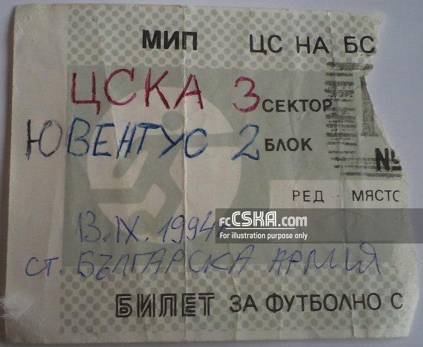 CSKA lost against Juventus (Torino) with result 0:3 in match from First round — First Leg of UEFA Cup 1994/95 played on 13 September 1994 on „Bulgarska armia“ stadium, in Sofia. goalscorers for the army men were Petar Mihtarski (43′ and 80′) and Milen Radukanov (68′).