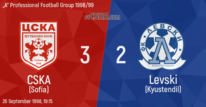 CSKA won against Levski (Kyustendil) with result 3:2 in match from 7th round of „А“ Professional Football Group 1998/99 played on 26 September 1998 at 19:15 on „Bulgarska armia“ stadium, in Sofia. goalscorers for the army men were Valentin Stanchev (6′), Georgi Yordanov (15′) and Rumen Hristov (72′).
