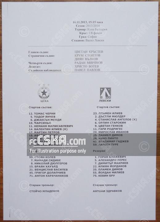 CSKA draw against Levski (Sofia) with result 0:0 in match from Round of 16 — First Leg of Cup of Bulgaria 2013/14 played on 16 November 2013 at 15:15 on „Vasil Levski“ stadium, in Sofia.