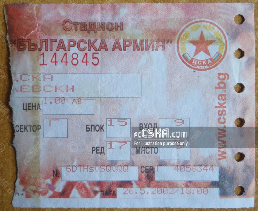 CSKA won against Levski (Sofia) with result 1:0 in match from 9th round of Premier League 2001/02 - first group played on 26 May 2002 at 18:00 on „Bulgarska armia“ stadium, in Sofia. goalscorer for the army men was Vladimir Manchev (15′).