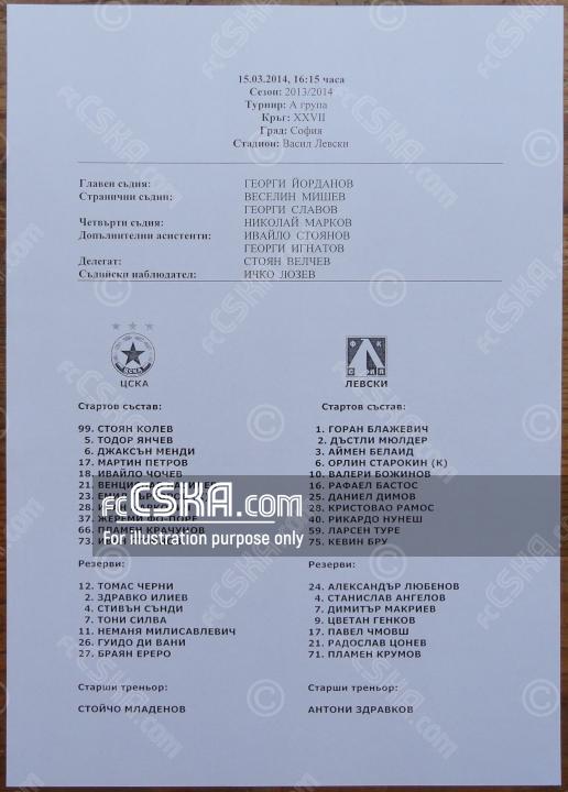CSKA won against Levski (Sofia) with result 1:0 in match from 27th round of „А“ Football Group 2013/14 - first 7 played on 15 March 2014 at 16:15 on „Vasil Levski“ stadium, in Sofia. goalscorer for the army men was Plamen Krachunov (93′).