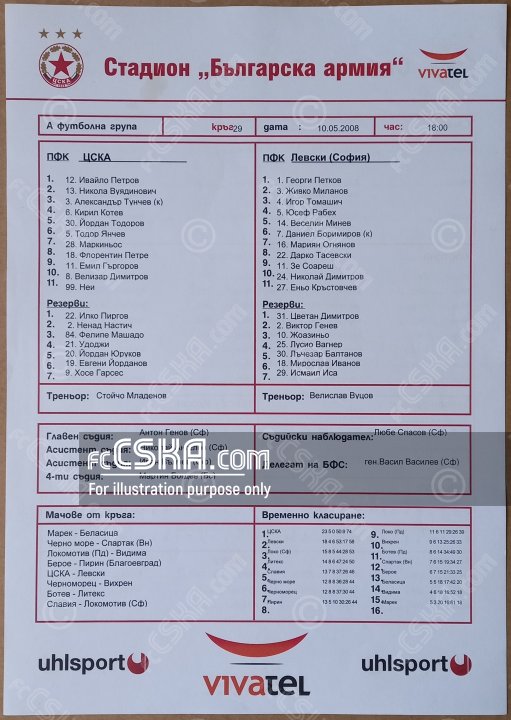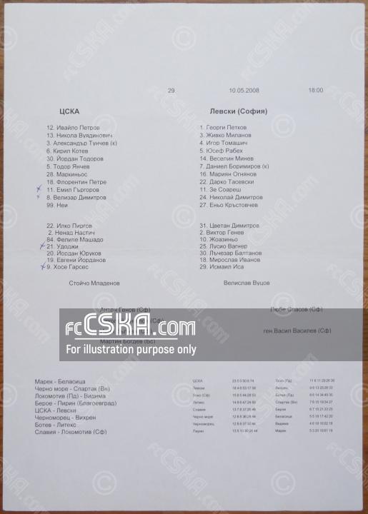 CSKA draw against Levski (Sofia) with result 1:1 in match from 29th round of „А“ Football Group 2007/08 played on 10 May 2008 at 18:00 on „Bulgarska armia“ stadium, in Sofia. goalscorer for the army men was Velizar Dimitrov (54′ from penalty).
