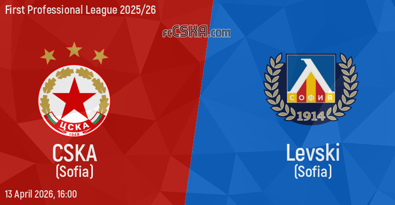 CSKA will play with Levski in match from 30th round of First Professional League 2025/26 on 13 April 2026 at 16:00 on „Vasil Levski“ stadium, in Sofia. the match will translated live on „Diema sport”.