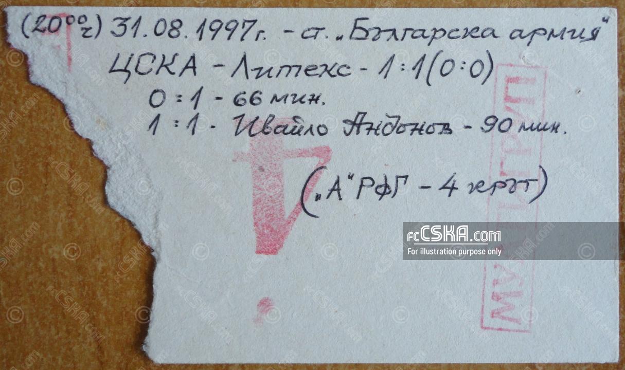 CSKA draw against Litex (Lovech) with result 1:1 in match from 4th round of „А“ Professional Football Group 1997/98 played on 31 August 1997 at 20:00 on „Bulgarska armia“ stadium, in Sofia. goalscorer for the army men was Ivaylo Andonov (88′).