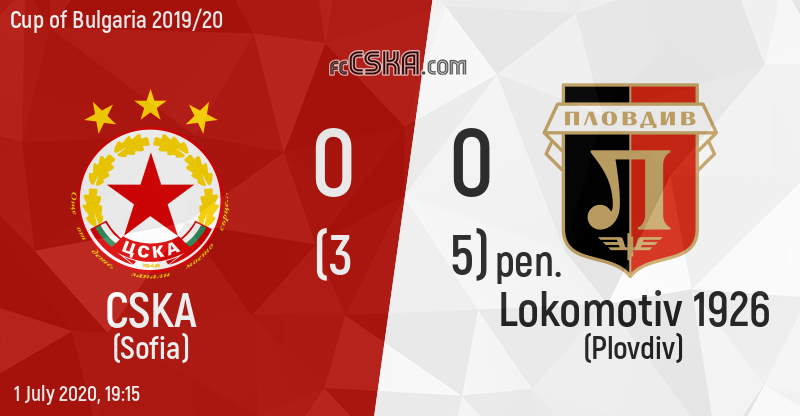 CSKA draw against Lokomotiv 1926 (Plovdiv) with result 0:0 in match from Final of Cup of Bulgaria 2019/20 played on 1 July 2020 at 19:15 on „Vasil Levski“ stadium, in Sofia. goalscorers for the army men were Petar Zanev (135′ from penalty), Geferson Teles (135′ from penalty) and Graham Carey (135′ from penalty).