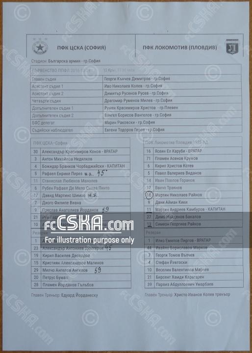 CSKA lost against Lokomotiv 1926 (Plovdiv) with result 0:1 in match from 12th round of First Professional League 2016/17 played on 29 October 2016 at 17:30 on „Bulgarska armia“ stadium, in Sofia.