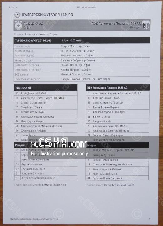 CSKA won against Lokomotiv 1926 (Plovdiv) with result 2:0 in match from 18th round of „А“ Football Group 2014/15 played on 6 December 2014 at 16:00 on „Bulgarska armia“ stadium, in Sofia. goalscorers for the army men were Marin Oršulić (58′) and Aurélien Joachim (85′).