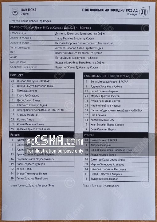 CSKA won against Lokomotiv 1926 (Plovdiv) with result 2:1 in match from 18th round of First Professional League 2025/26 played on 3 December 2025 at 18:00 on „Vasil Levski“ stadium, in Sofia. goalscorer for the army men was Leandro Godoy (35′ and 95′ from penalty).