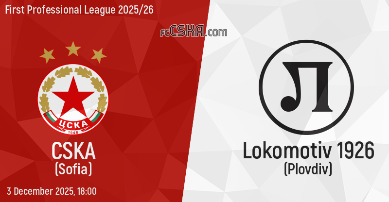 CSKA will play with Loko Pd in match from 18th round of First Professional League 2025/26 on 3 December 2025 at 18:00 on „Vasil Levski“ stadium, in Sofia. the match will translated live on „Diema sport”.