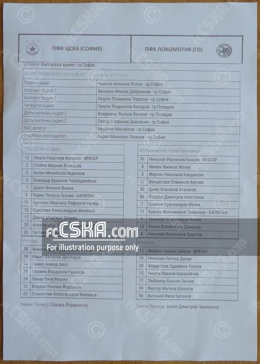 CSKA won against Lokomotiv (Gorna Oryahovitsa) with result 2:0 in match from 5th round of First Professional League 2016/17 played on 27 August 2016 at 21:15 on „Bulgarska armia“ stadium, in Sofia. goalscorers for the army men were Gustavo Culma (66′) and Bozhidar Chorbadzhiyski (95′).