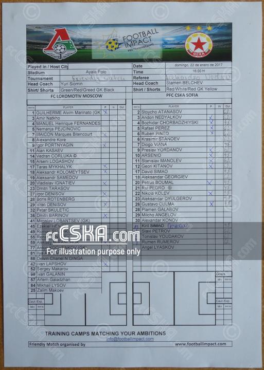 CSKA won against Lokomotiv (Moscow) with result 2:1 in match from Friendly games 2016/17 played on 22 January 2017 at 17:00 on „Ayala Polo Club“ stadium, in Sotogrande, Spain. goalscorers for the army men were Rui Pedro (53′) and Tonislav Yordanov (84′).