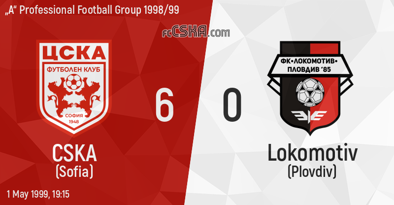 CSKA won against Lokomotiv (Plovdiv) with result 6:0 in match from 25th round of „А“ Professional Football Group 1998/99 played on 1 May 1999 at 19:15 on „Bulgarska armia“ stadium, in Sofia. goalscorers for the army men were Milen Petkov (8′), Rumen Hristov (25′ and 32′), Ivo Dimov (43′) and Dimitar Berbatov (70′ and 81′).